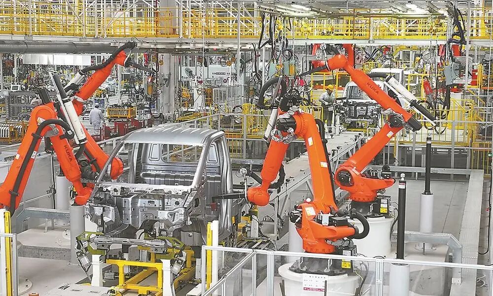 △东风汽车股份有限公司襄阳工厂冲焊车间VAN车焊装生产线。(资料图片) 摄影:王虎 张明远